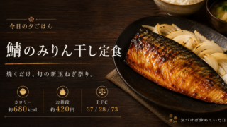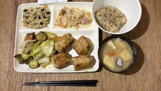 今日のごはん 厚揚げの豚ロース巻き定食。タンパク質しっかり夜ごはん。【820kcal・¥520】