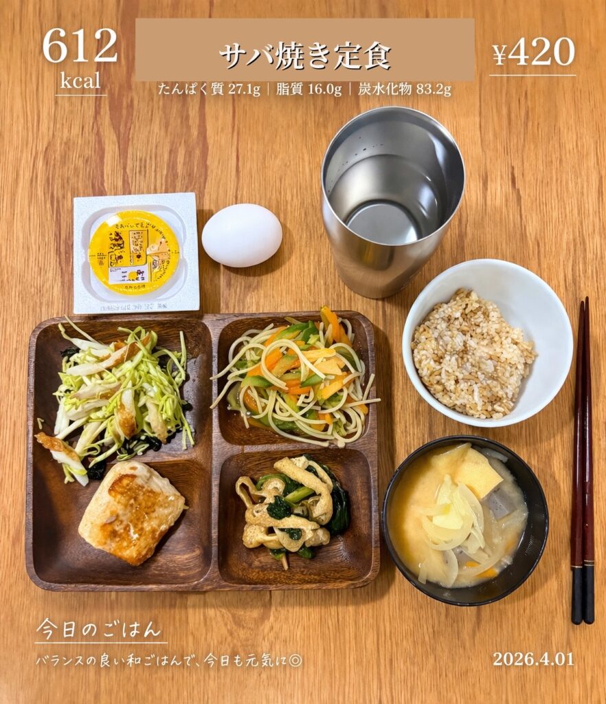 ただ、今日の鯖は少し小ぶり。メインとしては少し控えめな感じだったので、そのぶん副菜や納豆、卵で全体のボリュームを調整しています。