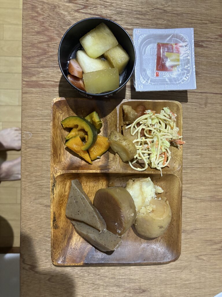 なんてちょっとしたトラブルがありましたが、無事に大きな冬瓜を解体し軽くゆでて冷凍する分と今夜の調理に使う分とわけれました。初めの冬瓜の煮物チャレンジでしたし、味付けもこんなもんかと適当にやったのが、割とお母んの味に近づけていたような気もします。今夜は煮物がおおくなりました。親戚からもらった大根も使ってこんにゃくとジャガイモでおでん風にして。鍋をそれに使ったので今夜はお味噌汁ないし。。煮物多めやし。安く済ませられてよしとしましょう。